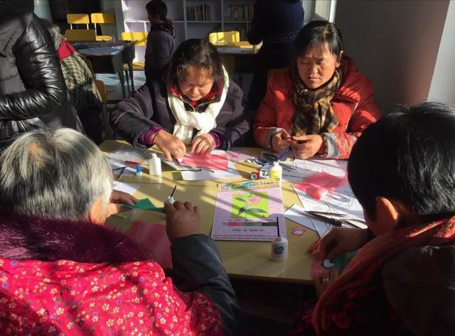 布贴画是我国手工艺品之一绝,一些零散布头在国人的创新思维下被发挥到极致。关镇村志愿者将从简单的图案开始教起,慢慢提高难度,最终让老人学会运用身边的素材创造出更多作品。(许雯雯)